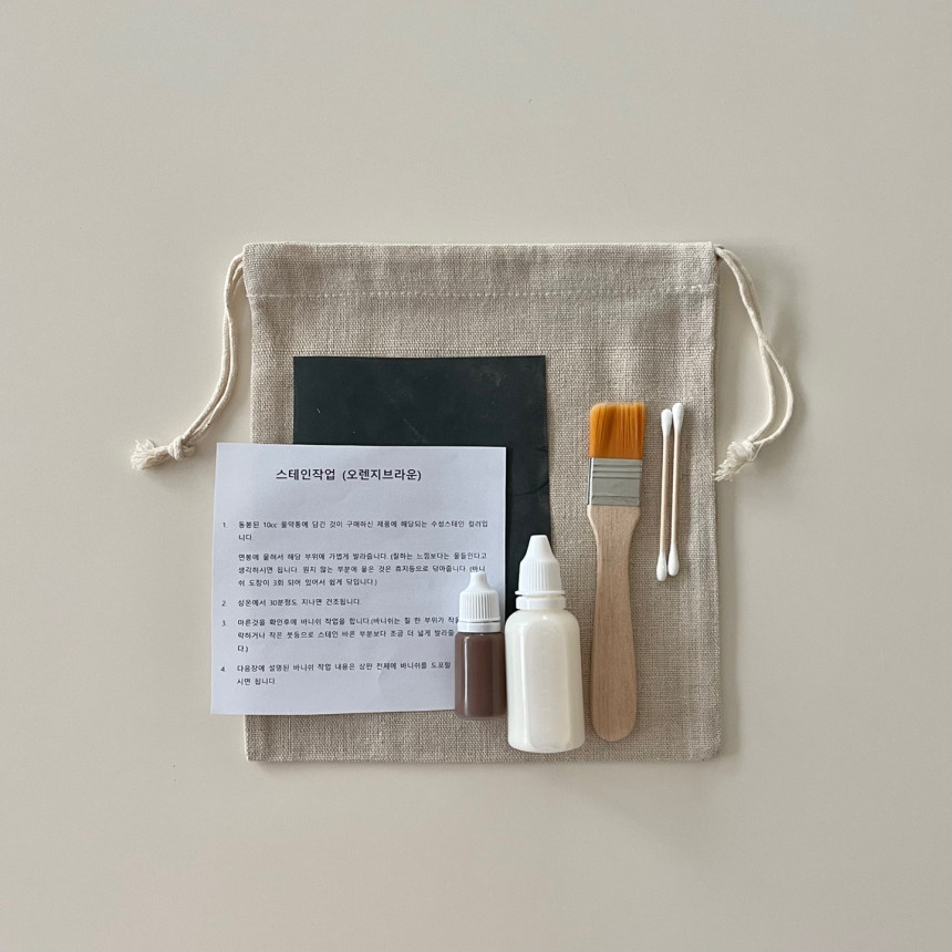 기본구성 : 파우치, 스테인, 바니쉬, 사포, 면봉, 작은 붓, 설명서