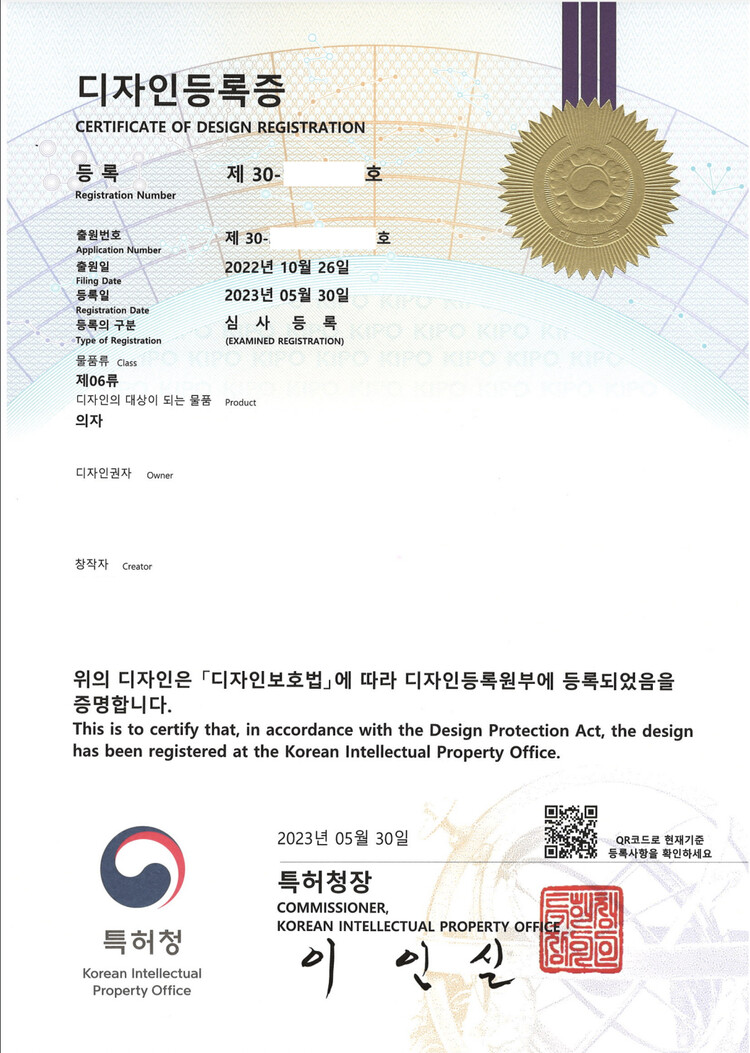 특허청에 공식적으로 디자인등록이 되어있습니다.