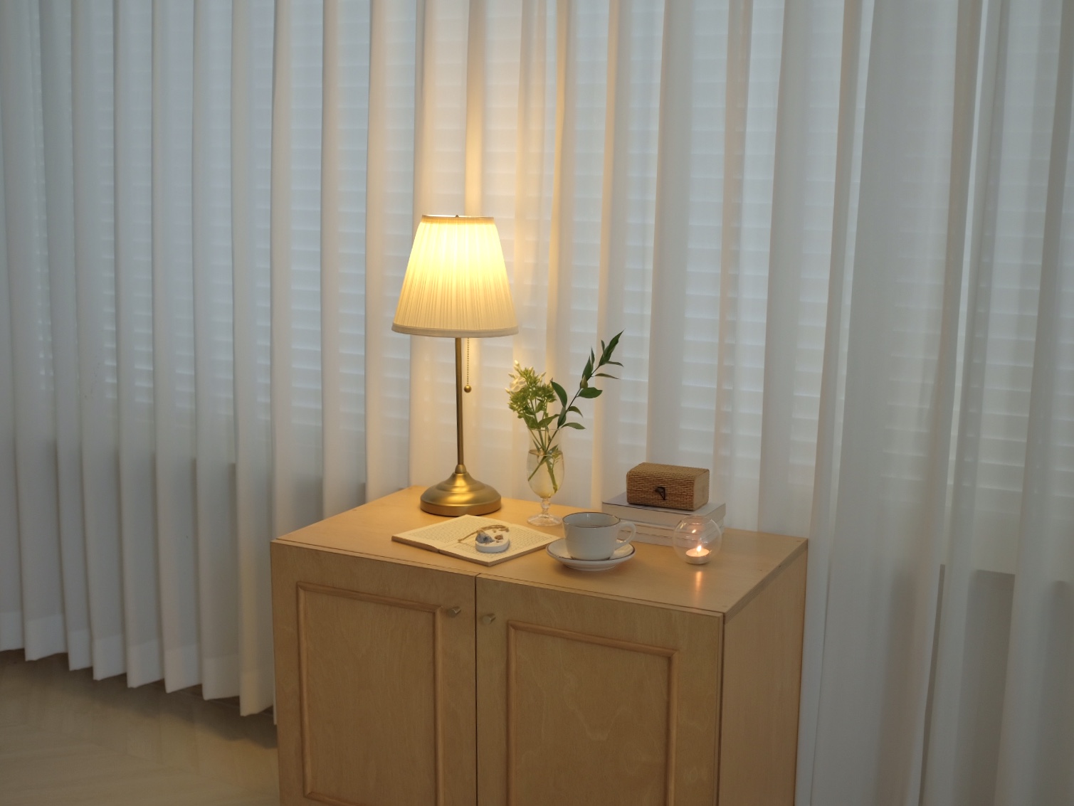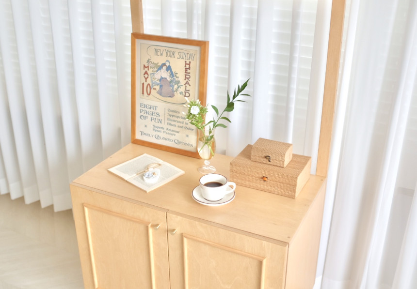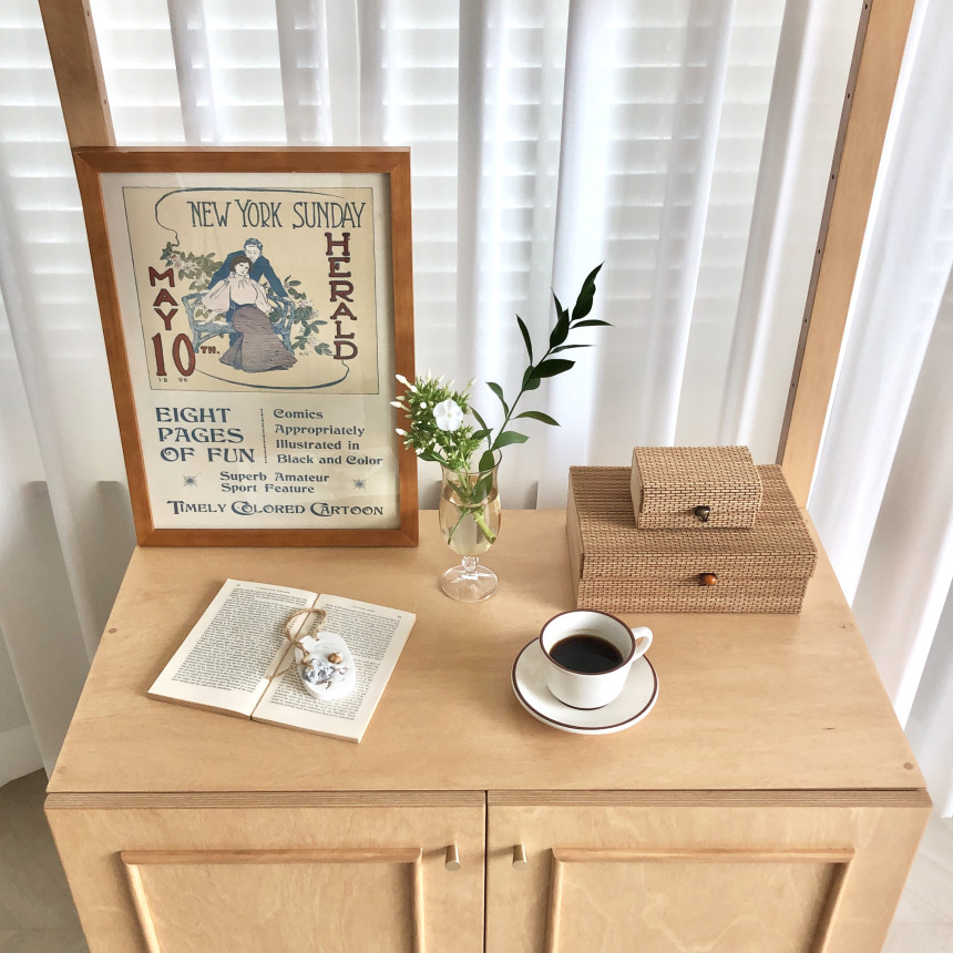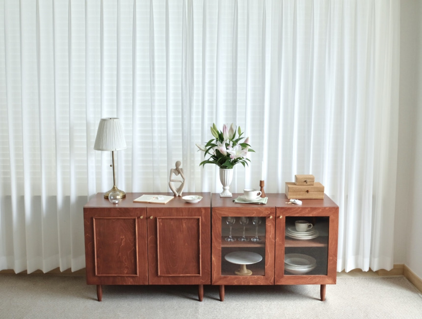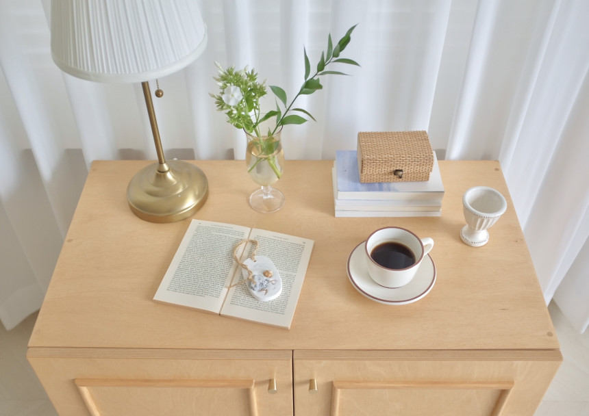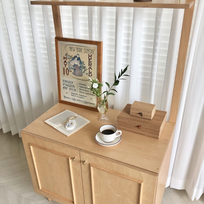 다른 디자인의 사이드보드 혹은 캣토일렛 두개를 배치시켜도 매력적이에요:)