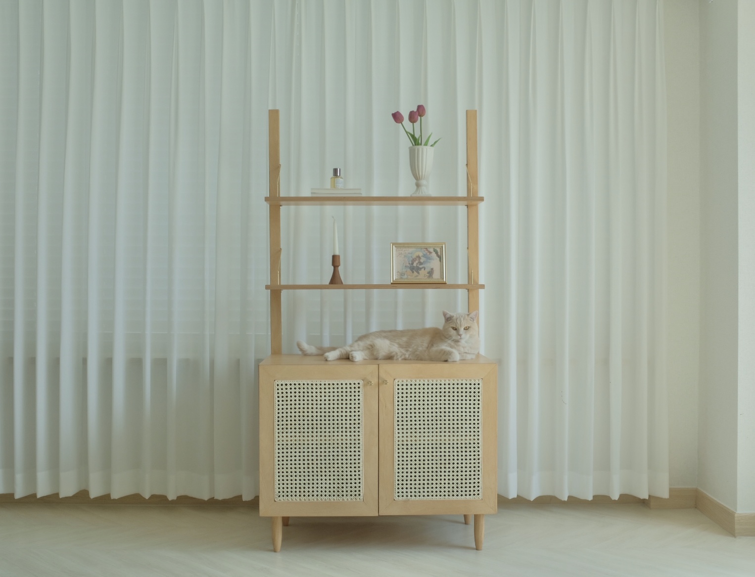 거실에 두어도, 안방에 두어도 인테리어를 헤치지 않으면서, 동시에 고양이가 좋아하는 화장실을 만드는 것이 우리의 목표입니다.