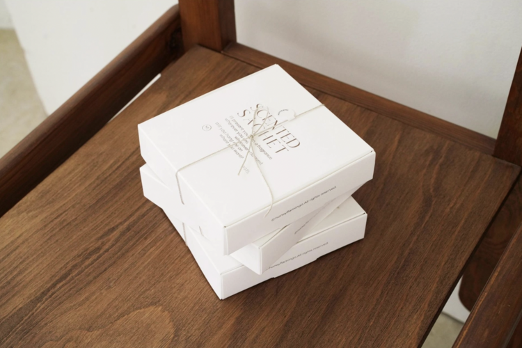 샤쉐스톤에 향을 입혀 직접 만든 린넨 파우치에 담아 완성하였습니다.
