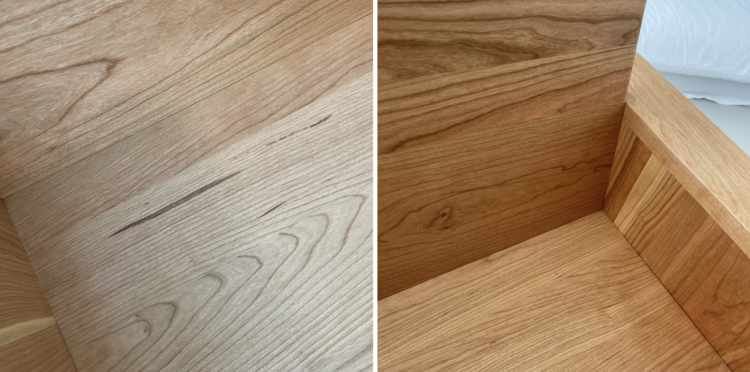 ※체리목에서 흔히 보이는 검은 무늬나 옹이, 이색현상이 보일 수 있으며, 이는 원목특성으로 하자가 아닙니다.