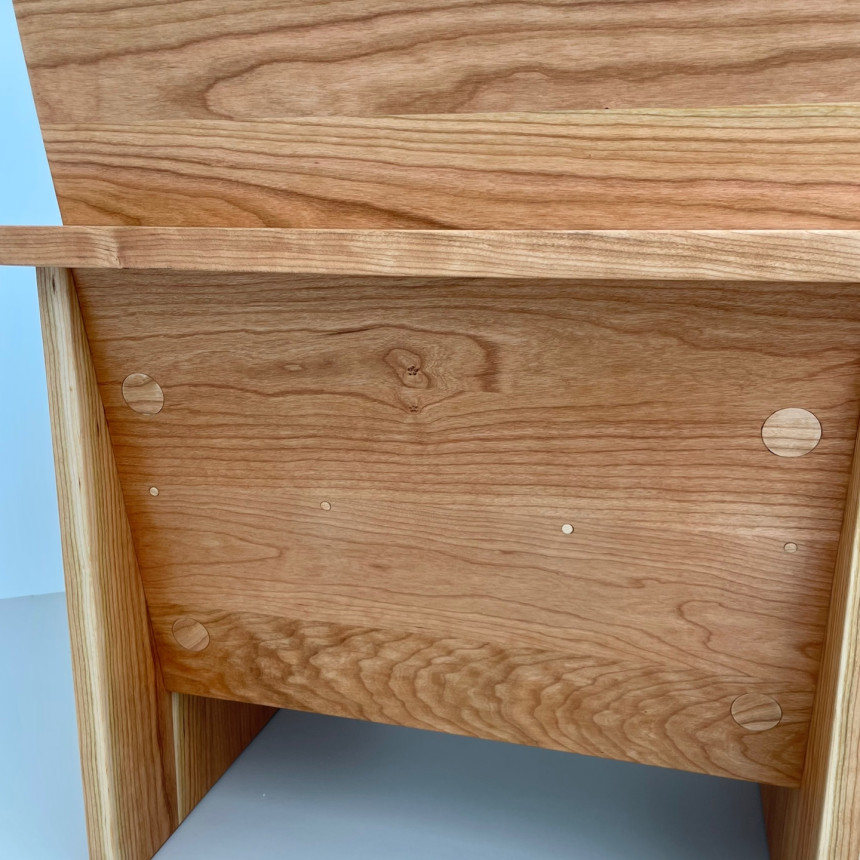 뒷면은 나사 메꿈 자국이 있으며, 필수불가결한 사항으로 하자가 아닙니다. 동일한 체리목을 사용했지만, 컬러의 차이가 발생할 수 있습니다.